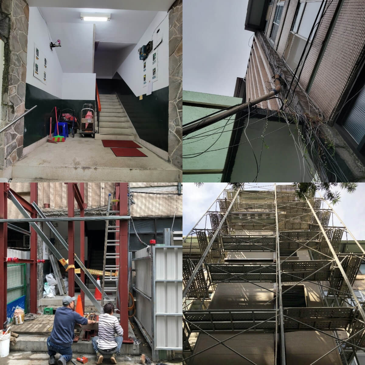 蕭醫師在取得建築師專業建議後,積極整合社區各戶住戶意願,尤其針對一樓兩戶住戶的協調投入大量時間與心力。由於電梯增建一樓既有圍牆違建空間需配合調整,一樓原有住戶的圍牆必須拆除並重新施作。其中一側住戶圍牆內即緊鄰魚池,蕭醫師特地親自攜同橙豐營造股份有限公司負責人,土木技師柯奕帆,耐心細緻地向住戶說明施工可能面臨的困難與解決方案,展現高度誠意與專業精神。